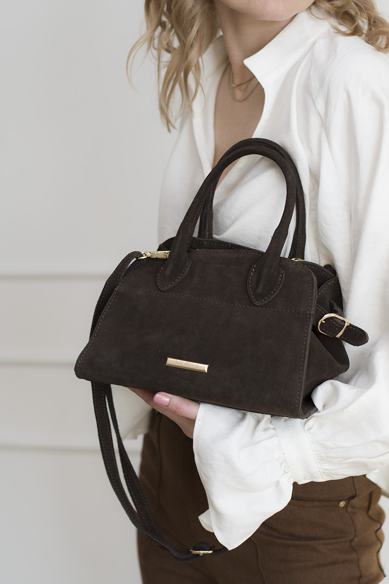 Skórzana zamszowa torebka, brązowa, czekoladowa [Luna - Chocolate]